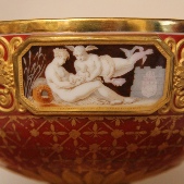 There were many well known porcelain manufacturers during the reign of Napoleon, but the most famous was the Sevres factory. Prior to the revolution it was owned by the French Kings but when the Republic was declared it was no longer a ‘royal enterprise’; the factory lost much of its aristocratic clientele as they fled France, and its funding reflected the ruinous state of the French economy. When Napoleon came to power he immediately placed large orders with Sevres to fill the various Imperial residences.