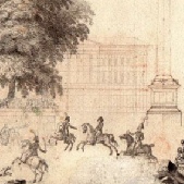 The style of art under Napoleon is often referred to as the Empire style, and it takes it roots from the introduction of Neo Classicism that spread thought out Europe after the discovery of the ruins of Herculaneum and Pompeii in the later 18th century. Percier & Fontaine were together the creators of the French Empire style. The two received many commissions from Napoleon and Josephine as they built their homes and as they sort to restore the royal palaces damaged during the French revolution.
